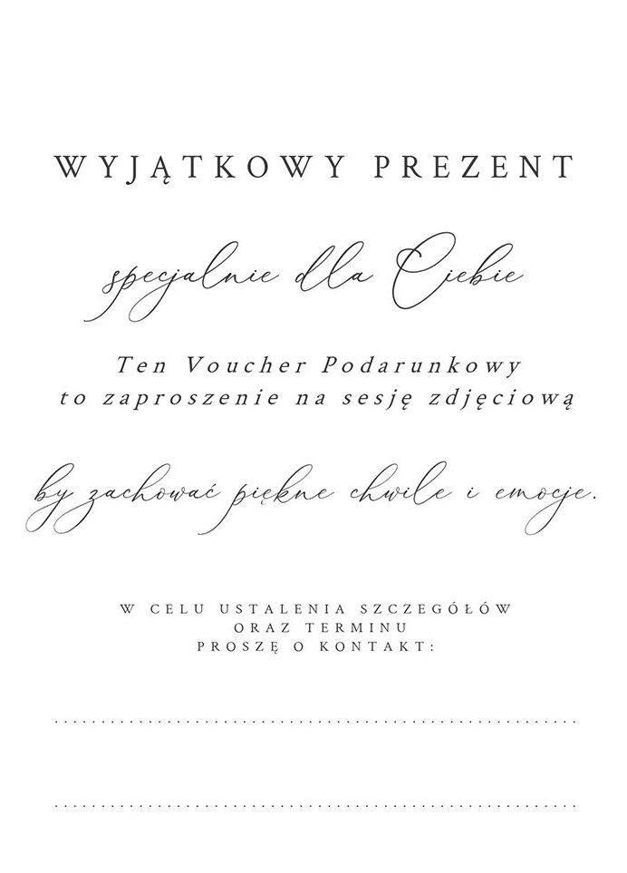 Proces: po zakupie skontaktuję się, by omówić szczegóły. Obdarowana osoba umawia termin sesji bezpośrednio ze mną.